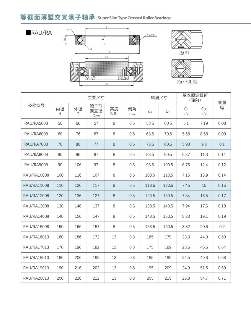 RA/RAU 系列交叉滚子轴承(超薄型、等截面)