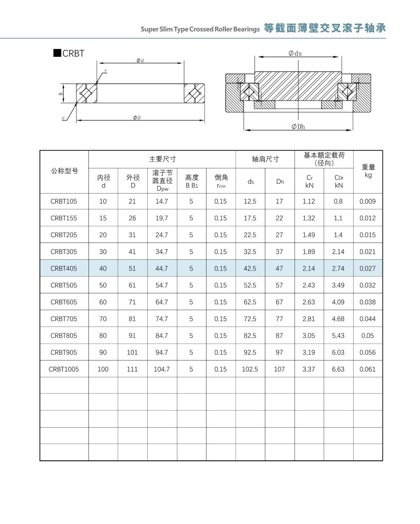 CRBT 系列交叉滚子轴承(超薄、超轻、极限空间用)