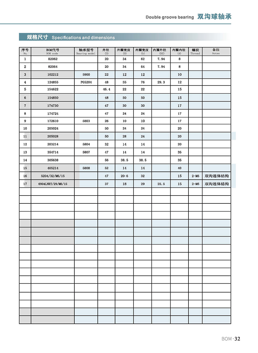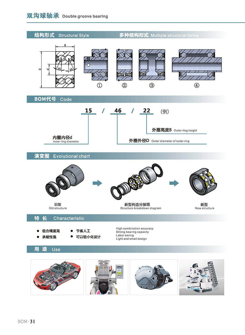 双沟球轴承取代标准轴承外圈压入钢套里是未来发展的必然趋势,解决了轴承和钢套配合不当带来的痛苦。根据以往标准轴承的失效数据统计,70%以上都是因为轴承的外径和钢套内孔配合不当,导致轴承固有精度或者组装件同心度下降,引起标准轴承达不到额定的寿命要求。